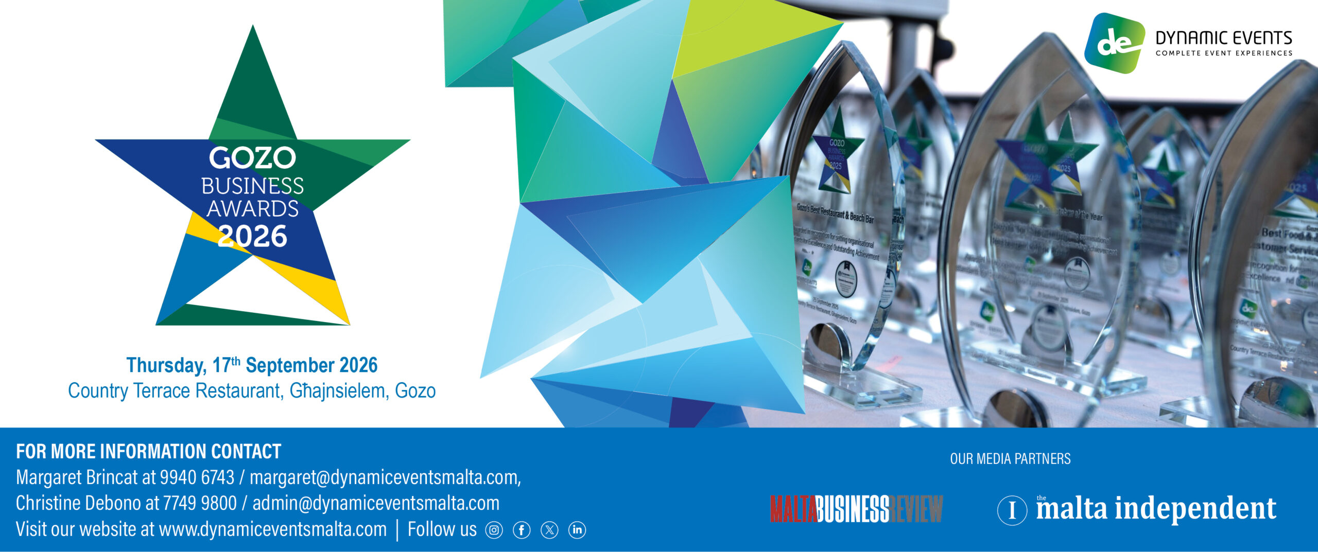 Margaret Brincat at 9940 67 43 / margaret@dynamiceventsmalta.com