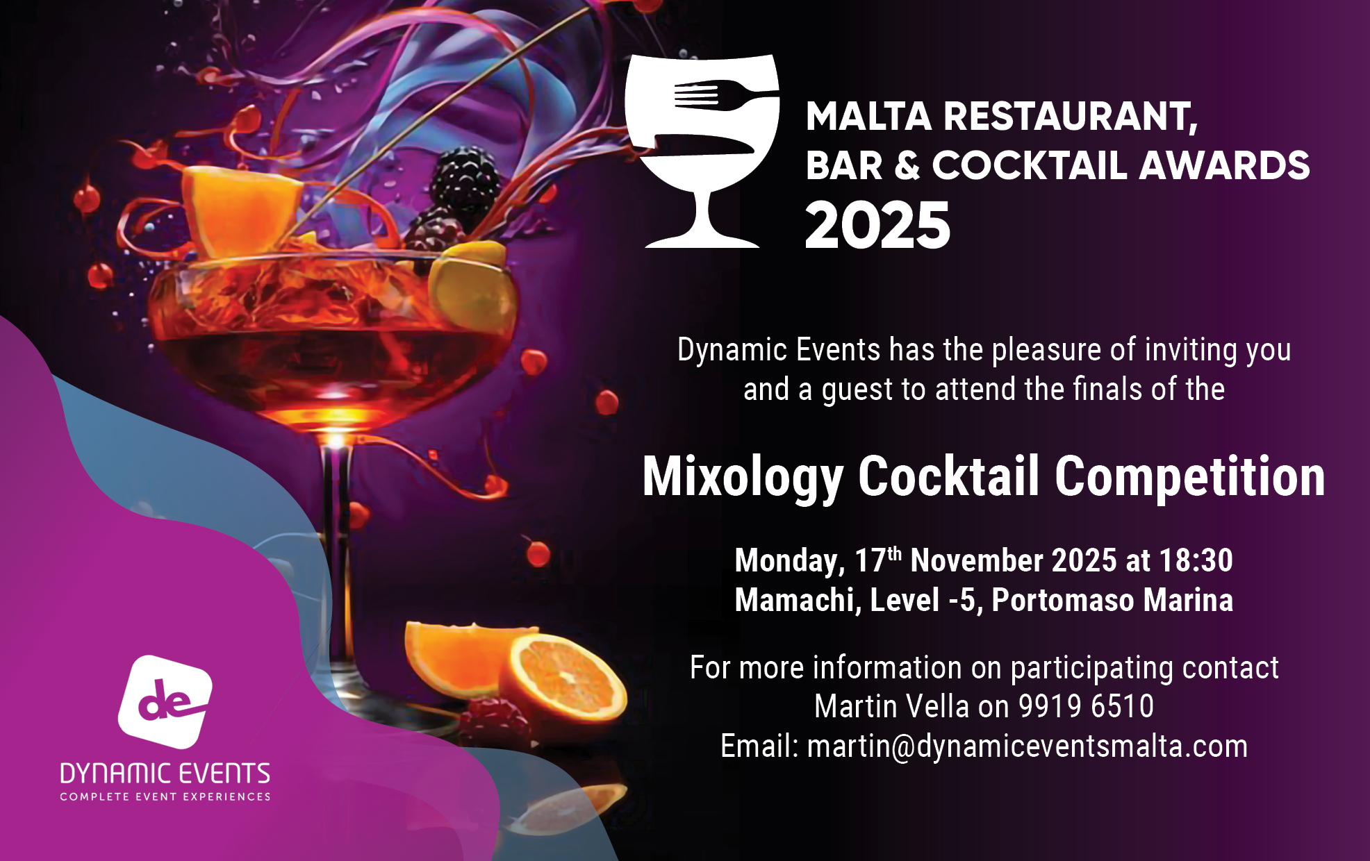 Following an impressive pool of shortlisted nominees and months of careful research and evaluation by some of the most respected individuals in the spirits and cocktail industries, the Malta Bar & Cocktail Awards is thrilled to announce the 5th edition of these unique awards. Each of the finalists will be showcased during a gala evening with an award ceremony in front of a crowd of their peers and supporters.