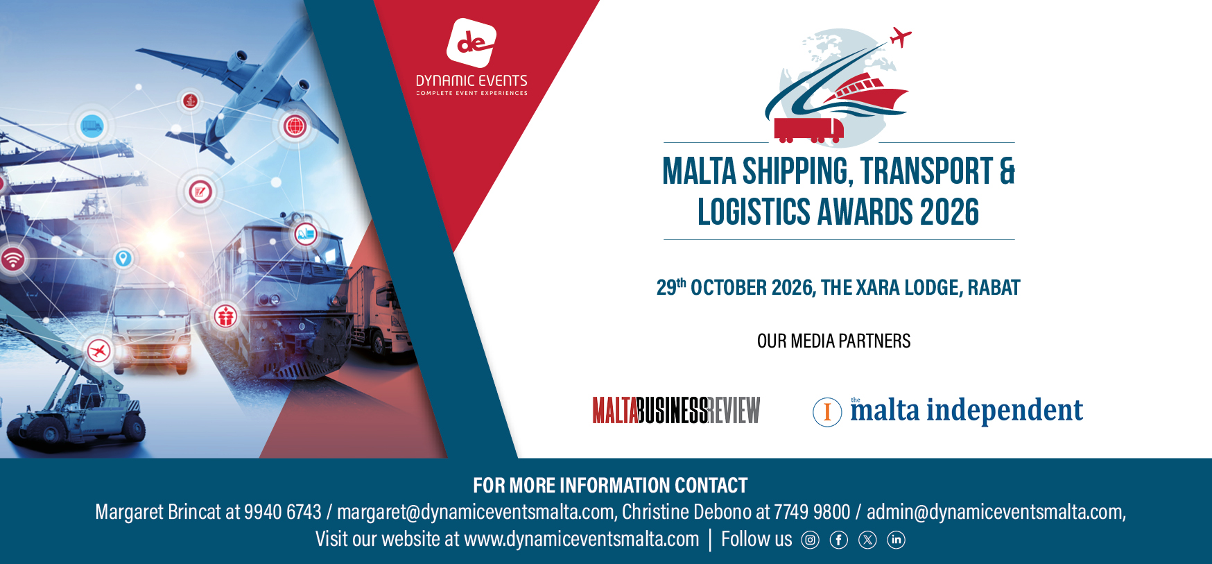 Margaret Brincat at 9940 67 43 / margaret@dynamiceventsmalta.com