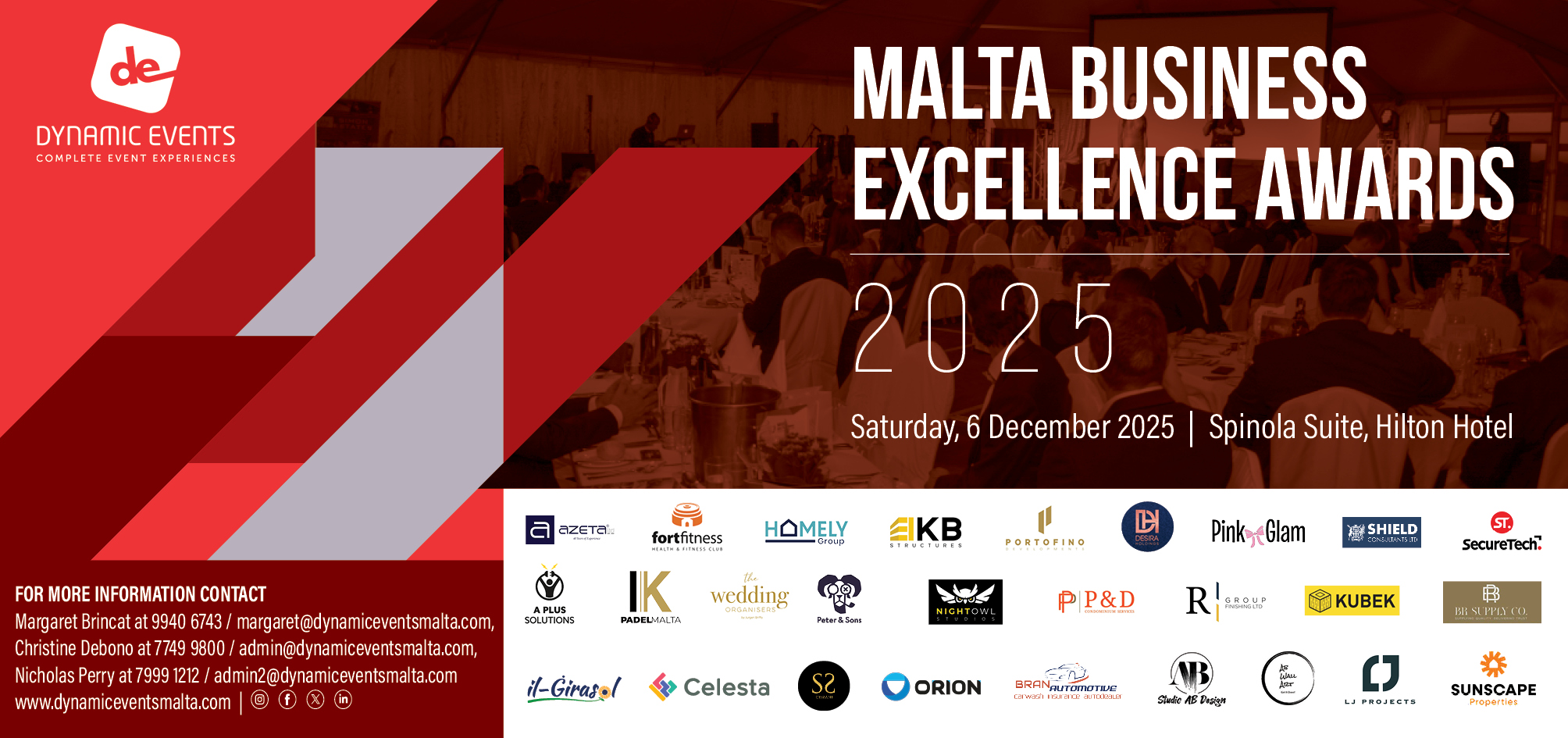 Margaret Brincat at 9940 6743 / margaret@dynamiceventsmalta.com